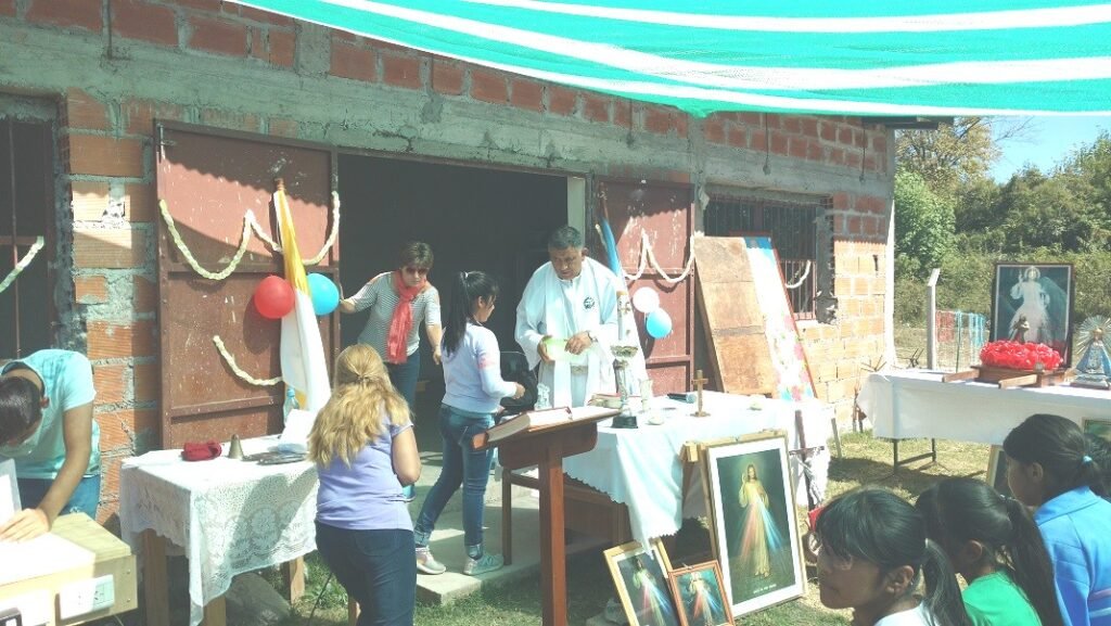 Colaboramos en la construcción de la Capilla: A lo largo del año 2017, la comunidad comenzó la construcción de un Salón Parroquial que hace las veces de Capilla y de Salón de usos múltiples. Se inauguró en 2018.